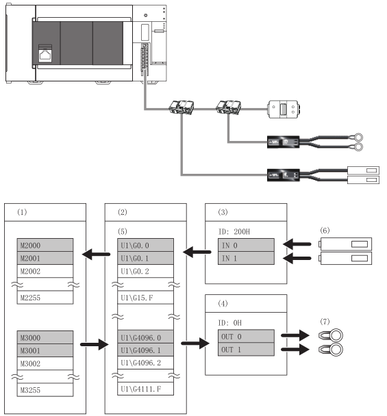 AnyWireASLINK是可從復雜的配線作業、誤配線等現場中解放出來,具有高速且高可靠性的系統。AnyWireASLINK中使用從站模塊的ID(地址),通過從站模塊與FX5-ASL-M進行通信。從站模塊的ID(地址)將被存儲到FX5-ASL-M的緩沖存儲器中。