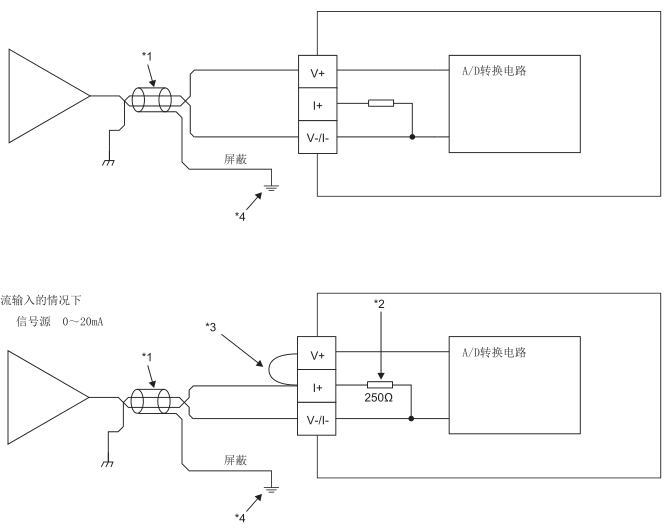 *3 電流輸入的情況下,必須將(V+)與(I+)的端子相連接。