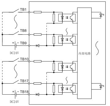 [公共端方式] 8點1公共端(公共端子:TB9、TB18)