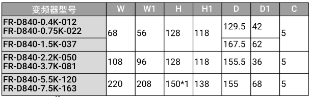 ·FR-D840-2.2K-050、FR-D840-3.7K-081、FR-D840-5.5K-120、FR-D840-7.5K-163